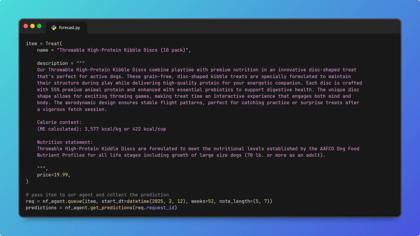 Forecast new items and concepts from text + images (optional) -- no history needed.
